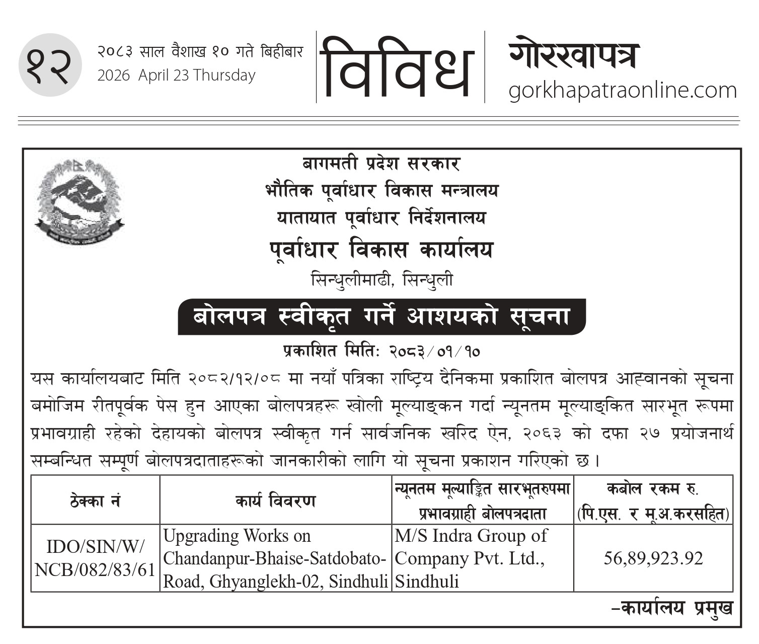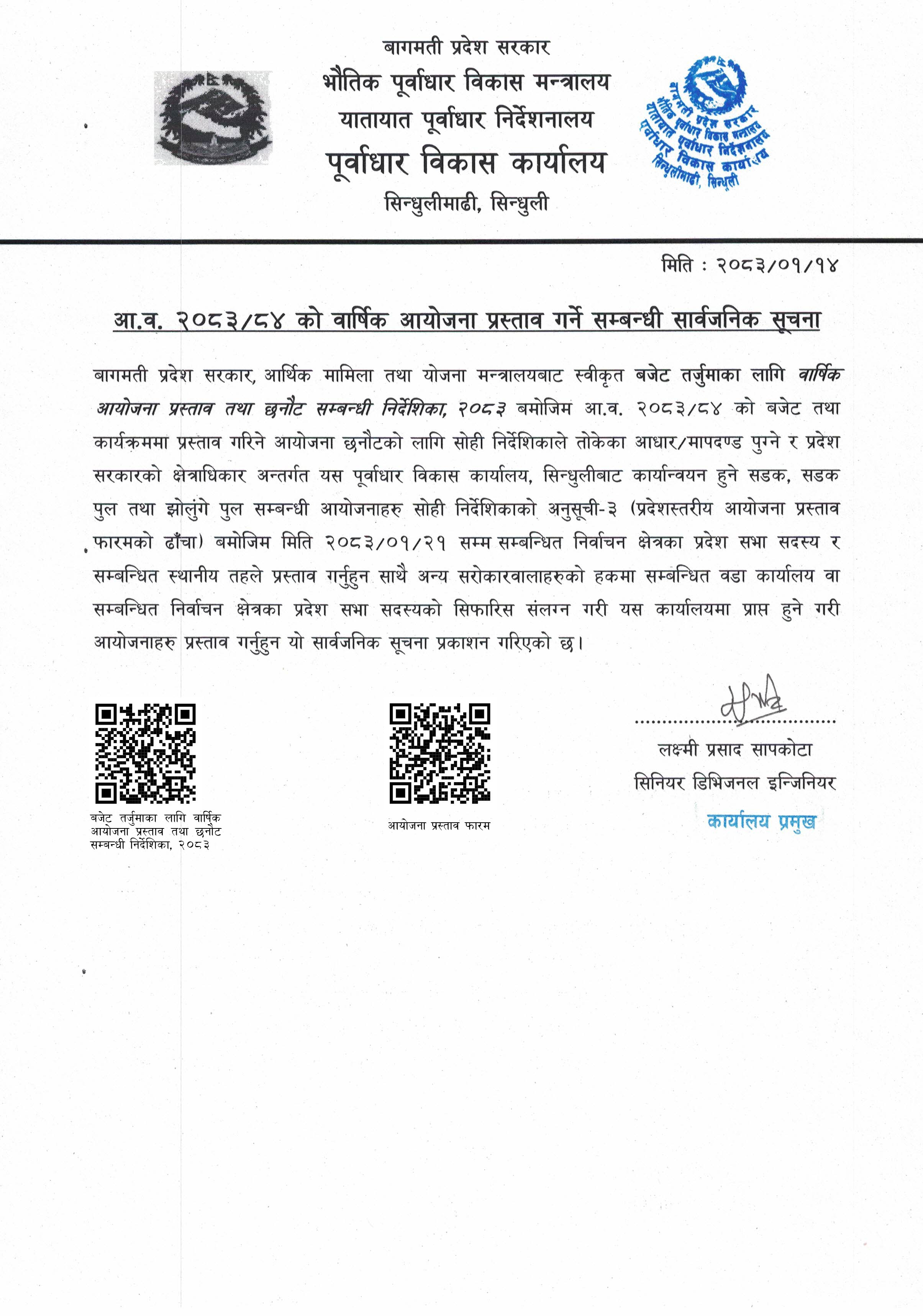 © सर्वाधिकार सुरक्षित पूर्वाधार विकास कार्यालय