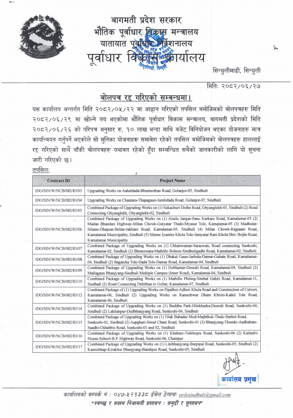 बोलपत्र रद्द गरिएको सम्बन्धमा