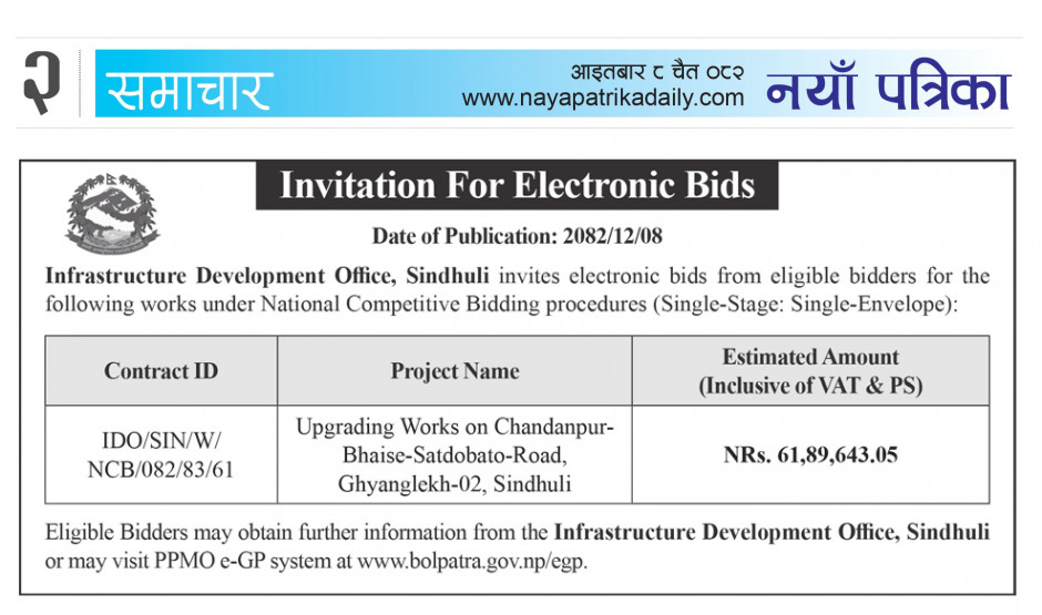 सडक मर्मतसम्भार कर्ता छनौटको लागि सार्वजनिक सूचना