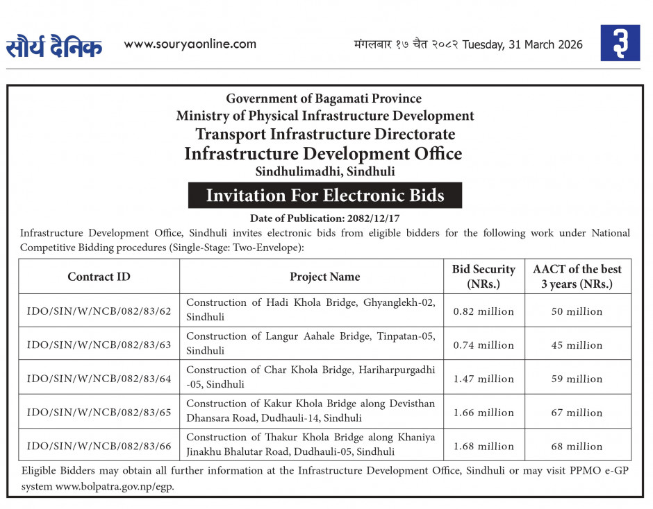 बोलपत्र आह्वानको सूचना