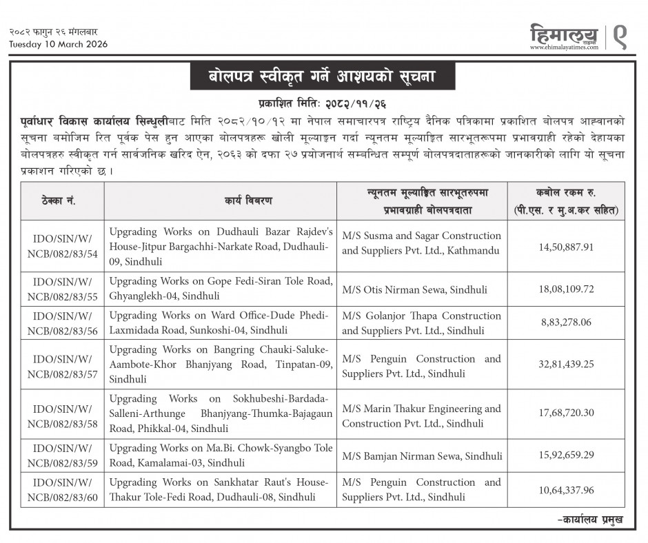 बोलपत्र स्वीकृत गर्ने आशयको सूचना