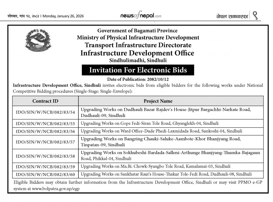 बोलपत्र आह्वानको सूचना